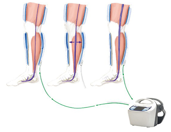 ②圓周壓力:通過充氣腿套對腿部進行圓周壓力,有效清除靜脈瓣后血液瘀積;