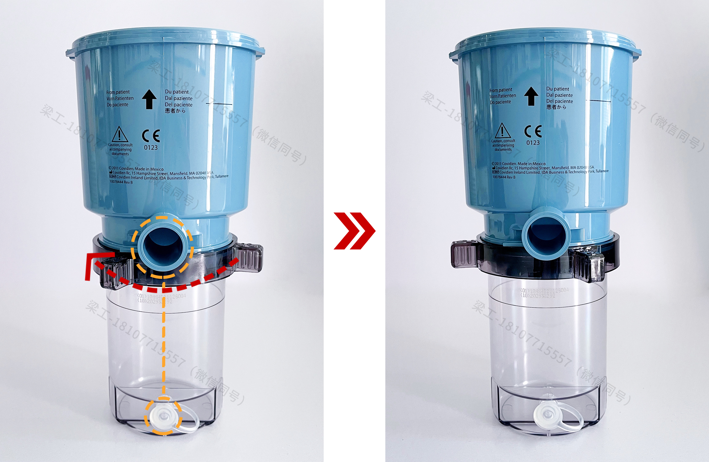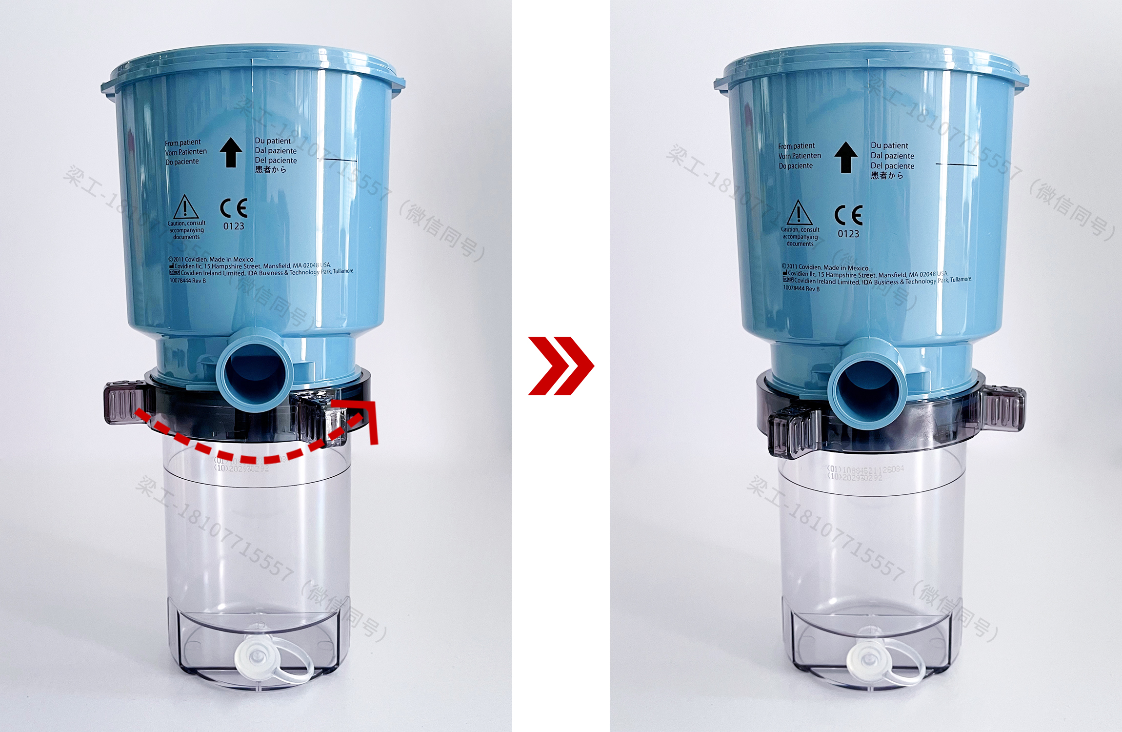 1.將呼出端過濾器鎖扣向右邊旋轉,聽到“咔”的一聲即可。 2.將集水杯排水口膠塞與呼氣支口對準在同一水平線上,將集水杯卡緊在過濾器下方,然后往左邊扭緊。 3.將呼吸機主機左側鎖定裝置往上提拉至解鎖狀態(tài)。 4.將呼氣支口朝外,沿滑軌放入,并使呼出端過濾器邊緣滑到安裝槽內,推到最里面,推到不能推動為止;放下左側鎖定裝置,固定呼出端過濾器。 二、拆卸 1.將左側鎖定裝置往上提拉至解鎖狀態(tài),取出呼出端過濾器。 2.將呼出端過濾器鎖扣向右邊旋轉,取下集水杯。 3.將集水杯內的冷凝水倒入專門收集醫(yī)療廢棄物的容器。 (因為集水杯的冷凝水可能帶有傳染病菌) 4.擦干呼出端過濾器及集水杯的水珠,送去供應室進行消毒。 三、消毒 PB840呼吸機的呼出端和吸氣端過濾器應該采用高溫高壓的方式進行消毒(溫度132-134℃,20分鐘) 注意:溫度不宜超過135℃,禁止浸泡! 四、PB840呼吸機耗材(呼出端過濾器集水杯、吸入端過濾器、呼出端過濾器) PB840呼吸機流量傳感器 PB840呼吸機兼容氧電池 PB840呼吸機空壓機保養(yǎng)套件