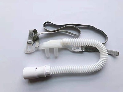 臨床最常用的吸氧裝置。鼻導(dǎo)管吸入氧體積分?jǐn)?shù)與氧流量有關(guān)。但鼻導(dǎo)管吸氧無(wú)法充分濕化,超過(guò)5 L/min的流速時(shí)患者難以耐受。