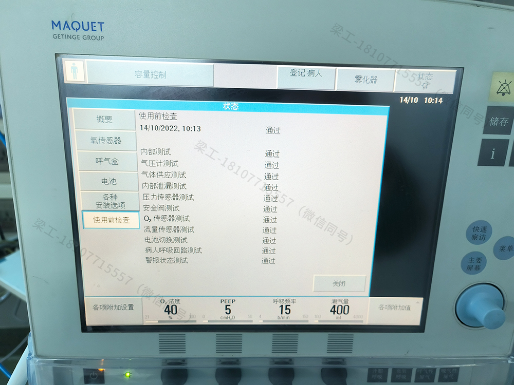 包括:(內(nèi)部測(cè)試,氣壓計(jì)測(cè)試,氣體供應(yīng)測(cè)試,內(nèi)部泄漏測(cè)試,壓力傳感器測(cè)試,安全閥測(cè)試,氧氣傳感器測(cè)試,流量傳感器測(cè)試,電池切換測(cè)試,患者呼吸回路測(cè)試,報(bào)警狀態(tài)測(cè)試)。