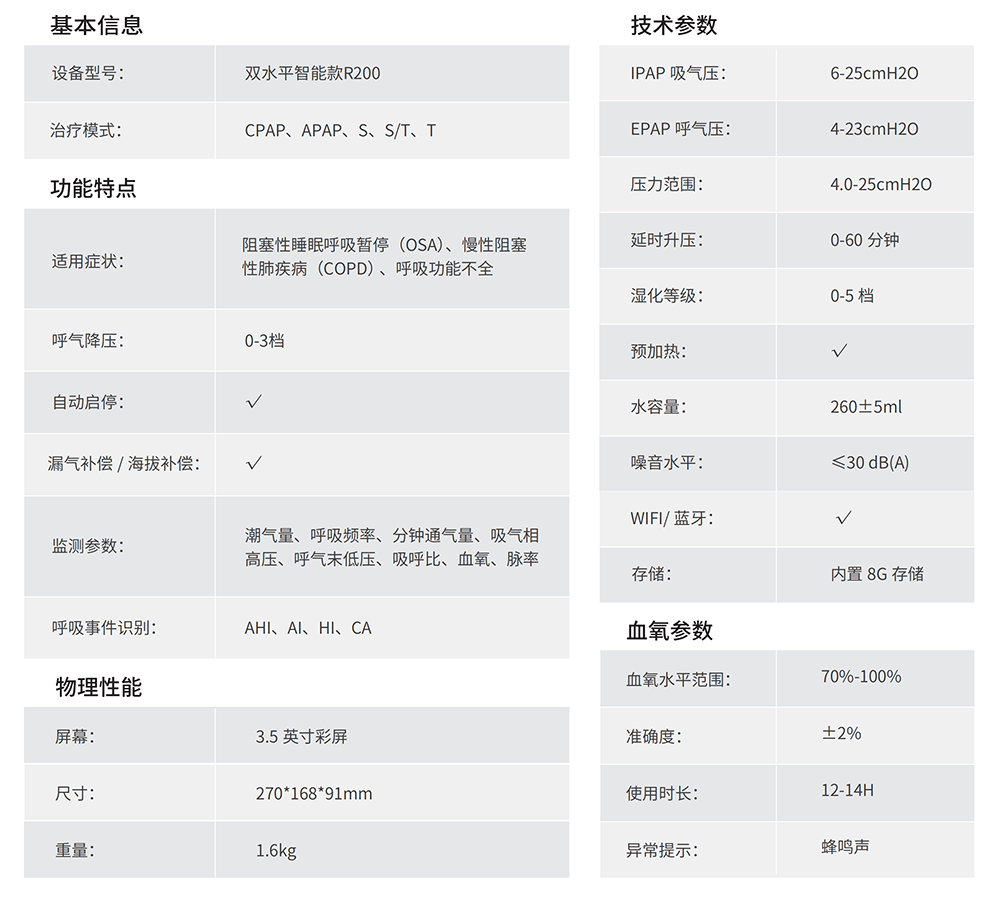 - 準(zhǔn)確識(shí)別 OA,CA,H,LL 等呼吸事件,智能調(diào)節(jié)提供更舒適呼吸體驗(yàn)。